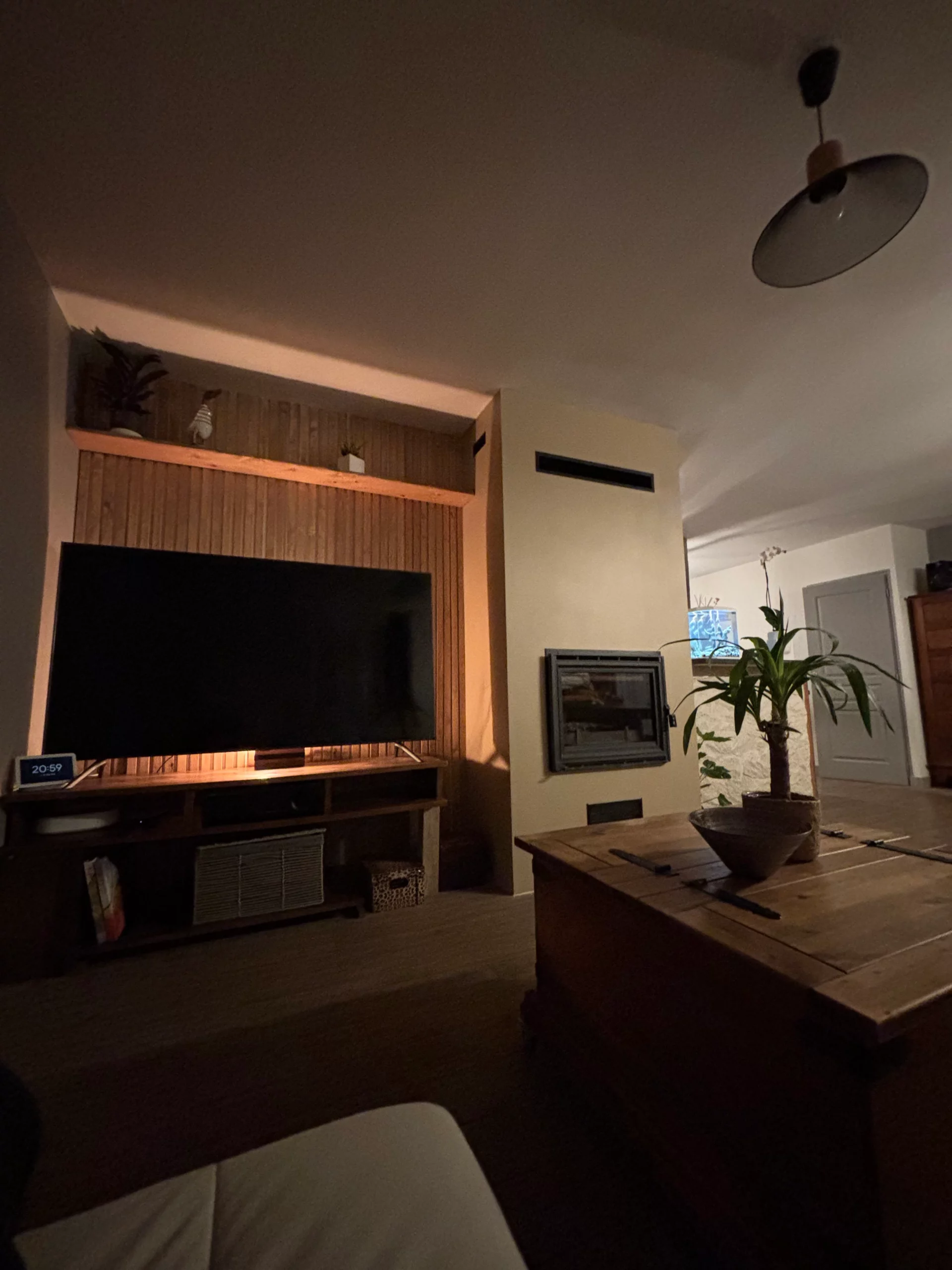 Création d’un mur TV, cheminée et bar au rendu minéral